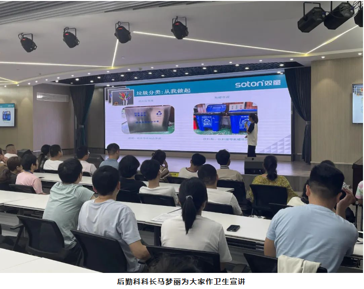 在激動人心的頒獎典禮過后,后勤科科長馬夢麗也對后勤、衛(wèi)生等工作進行宣講,她強調(diào)大家要尊重、遵守“雙童”的各項規(guī)章制度,重視公共區(qū)域的衛(wèi)生情況,日常生活中做好垃圾分類工作,共同維護公司環(huán)境。