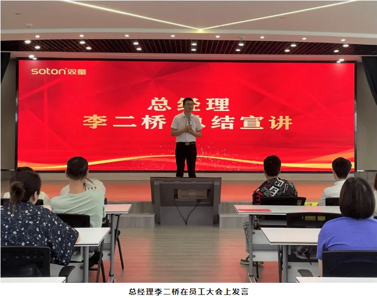 最后,由“雙童”總經(jīng)理李二橋作大會總結(jié)發(fā)言。他表示,在今年國內(nèi)市場環(huán)境不佳,很多企業(yè)經(jīng)營下滑的情況下,“雙童”第一季度營業(yè)額仍保持穩(wěn)步增長,這是大家共同努力的結(jié)果。另一方面,盡管經(jīng)營利潤還沒有實現(xiàn)大幅度增長,公司目前已經(jīng)開始計劃投入近千萬元用于廚房、大會堂、車間設(shè)備等地方的硬件改造,以提升員工生活、工作品質(zhì),李總堅持認為,好的硬件環(huán)境更有益于提升員工的整體素養(yǎng)!