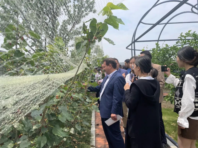 枝頭飽滿的桑葚成功引起了阿拉伯參訪團(tuán)們的注意