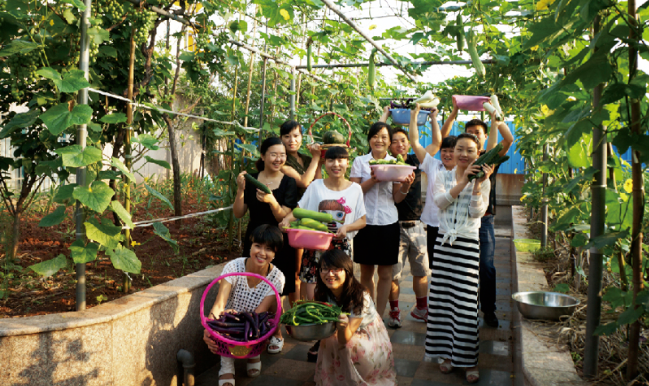 “雙童”一期廠區(qū)的屋頂菜園迎來大豐收