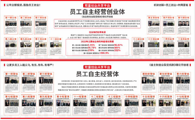 實(shí)踐證明,這套機(jī)制是行之有效的。成立“雙童創(chuàng)業(yè)共享平臺”以來,很多員工在內(nèi)部實(shí)現(xiàn)“零成本”創(chuàng)業(yè),至今已孵化出17個板塊的自主經(jīng)營體,并裂變出14家員工創(chuàng)業(yè)體公司。通過平臺資產(chǎn)共享,消化吸管板塊原本的冗余資產(chǎn),且反哺公司主營板塊,使整體運(yùn)營成本下降了27.5%。