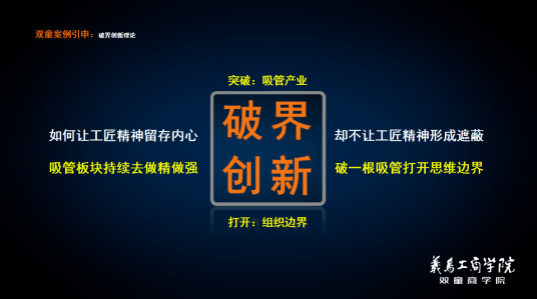 經(jīng)過長期的學(xué)習(xí)與反思,“雙童”發(fā)生了改變,不再堅(jiān)持一根吸管,而是選擇破界競爭。通過把冗余的生產(chǎn)空間、硬件和設(shè)備都充分地利用起來,同時(shí)在這個(gè)過程中實(shí)現(xiàn)扁平化、去中心、破自我、拆圍墻、拓邊界。由此,雙童不斷涌現(xiàn)出內(nèi)部員工主動(dòng)創(chuàng)業(yè),從原來的管理者轉(zhuǎn)身成為創(chuàng)業(yè)者。