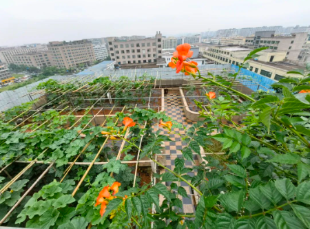 樓頂被綠植覆蓋,儼然是一個(gè)“綠色城堡”