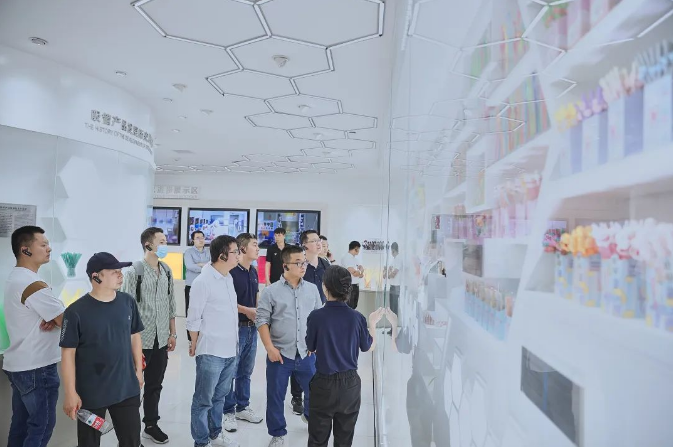講解員盡心為考察團(tuán)介紹每款吸管背后的故事