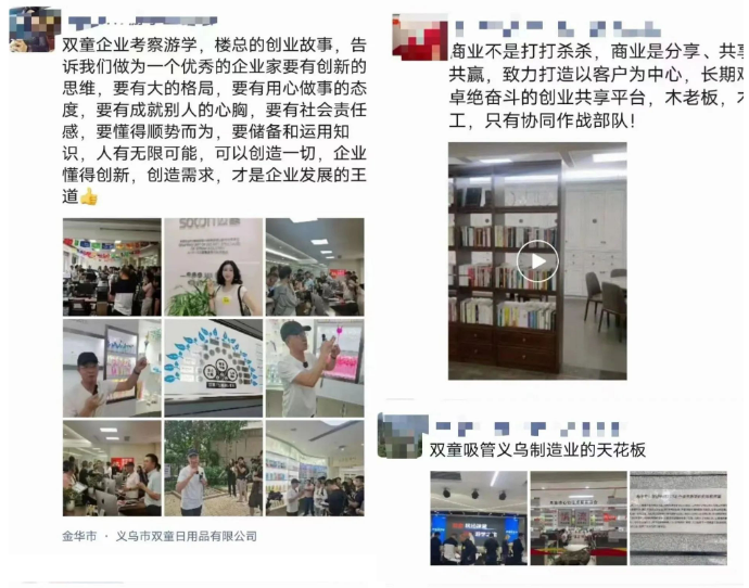 近期,“雙童”又迎來(lái)了新的研學(xué)隊(duì)伍,上百位的企業(yè)家和高管團(tuán)隊(duì)齊聚“雙童”,互相分享學(xué)習(xí)。令人驚喜的是,“雙童”董事長(zhǎng)樓仲平提出帶隊(duì),與總經(jīng)理李二橋接棒式講解,為學(xué)員們?cè)敿?xì)介紹關(guān)于企業(yè)管理的點(diǎn)點(diǎn)滴滴,帶給大家獨(dú)特的研學(xué)體驗(yàn)。讓我們一起來(lái)看看這一趟“奇妙之旅”吧!圖片
