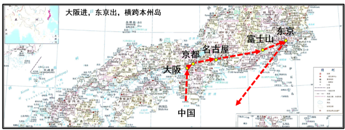 本次日本研學(xué),將以富士山為中心,從關(guān)西到關(guān)東,直線距離約600km。