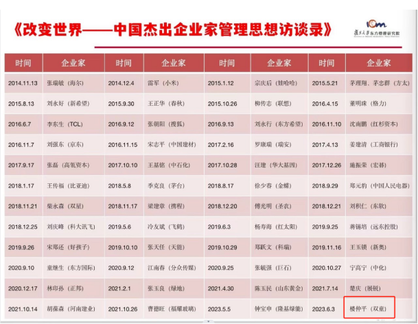 同時期,中國規(guī)模最大的財經(jīng)媒體頻道《第一財經(jīng)》,在2023年9月22日晚八點播出著名主持人秦朔老師與樓仲平老師的訪談專題片《樓仲平:順時而變》:通過自學成才后,通過知識的運用推動雙童30年快速發(fā)展,用“一根吸管”的實踐解析中國改革開放后中小企業(yè)在有限條件下如何突破并穿越一個個越來越難的經(jīng)濟周期。在企業(yè)獲得長足發(fā)展和個人財富自由后,樓仲平老師毅然轉(zhuǎn)型創(chuàng)業(yè)教育,創(chuàng)辦雙童商學院,全力投身并助力中小企業(yè)在經(jīng)營和管理上的瓶頸突破。