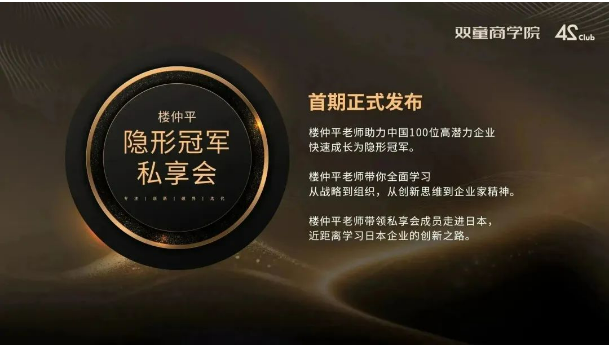 明年春季之后開營的第二期樓仲平·隱形冠軍私享會,將在10月份開始正式招募。