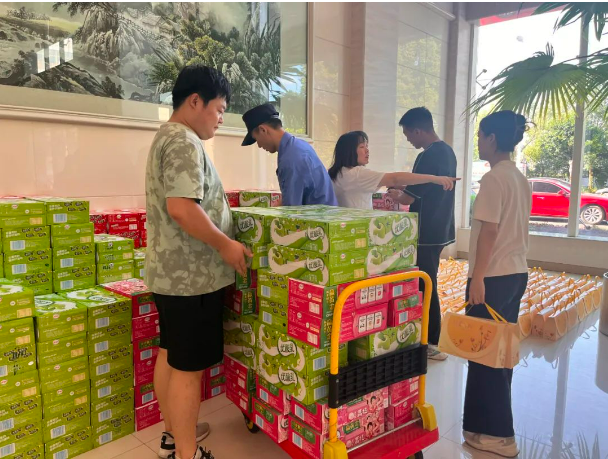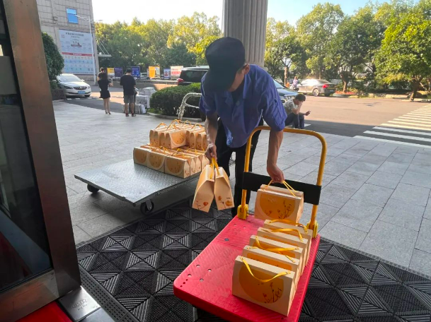 中秋福利準(zhǔn)備好啦!收到領(lǐng)取消息的小伙伴們,立馬拉著推車火速趕來了領(lǐng)取現(xiàn)場,把本部門的福利全領(lǐng)走啦!有美味的月餅,還有酸酸甜甜的牛奶!