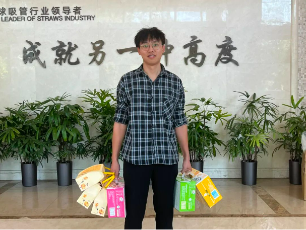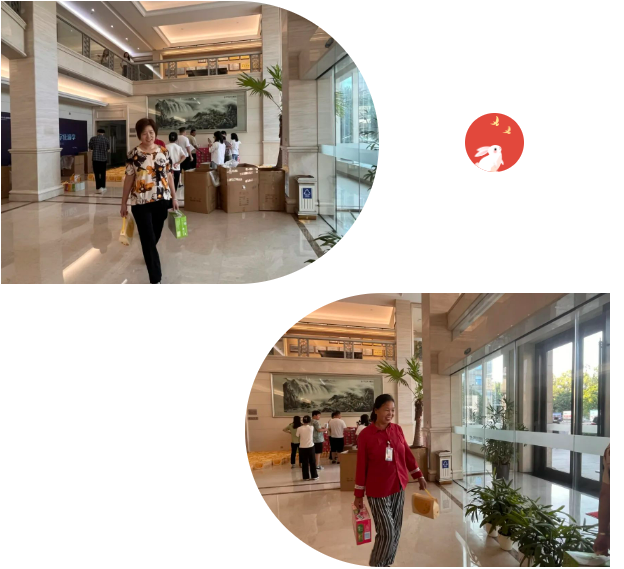 瞧,拎著禮品的“雙童”員工臉上洋溢著燦爛的笑容