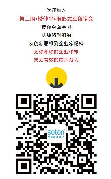 “樓仲平隱形冠軍私享會”是以我的名字作為背書的一個小范圍思想圈子,既然用我的名字作為背書,我將會用我的人格作為自己終生的承諾,她將會成為我一生中最為重要的思想載體,我將會用心所極、竭盡全力來陪伴所有的同學(xué)們更快成長。