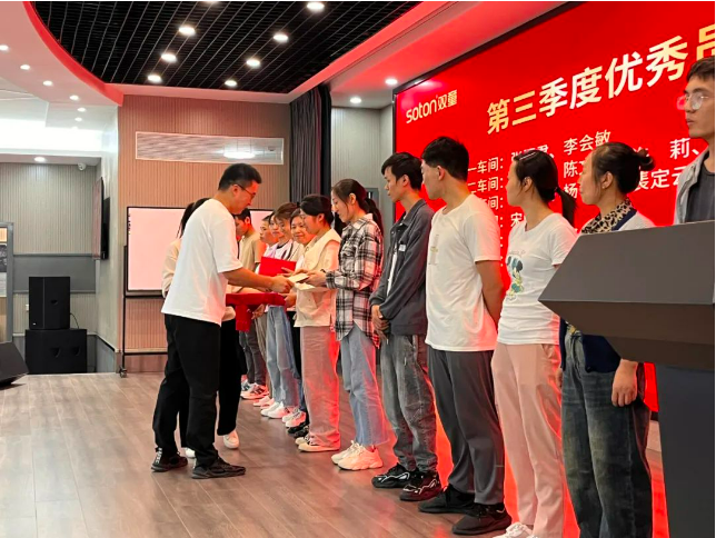 當(dāng)頒獎(jiǎng)音樂響起,現(xiàn)場(chǎng)氛圍瞬間被點(diǎn)燃,在陣陣掌聲中,“優(yōu)秀員工”獲得者走向舞臺(tái)中央,在聚光燈下,總經(jīng)理李二橋依次為他們頒發(fā)榮譽(yù)證書。相信這一刻,對(duì)每一位“優(yōu)秀員工”來說都意義非凡,對(duì)臺(tái)下的全體員工也是莫大的鼓舞!