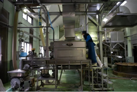 在社長(zhǎng)的帶領(lǐng)下觀摩工人釀酒第一現(xiàn)場(chǎng)
