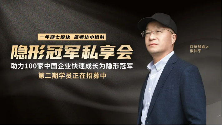 歡迎您走進「樓仲平隱形冠軍私享會」課堂,在樓仲平老師的陪伴下,學習借鑒雙童30年的成功的經(jīng)驗積累,助力您在創(chuàng)業(yè)路上更加順遂,在遇到抉擇時能做出更加理性的判斷!
