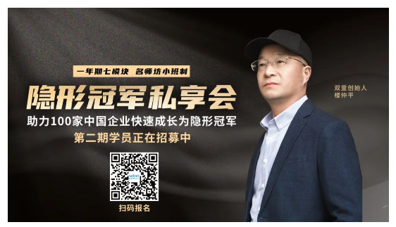 助力中國(guó)100家高潛力細(xì)分行業(yè)企業(yè)成為隱形冠軍,是樓仲平老師此生最大的愿望,為此雙童商學(xué)院聯(lián)合42Club共同發(fā)起了以樓仲平名字為背書(shū)的「樓仲平隱形冠軍私享會(huì)」。