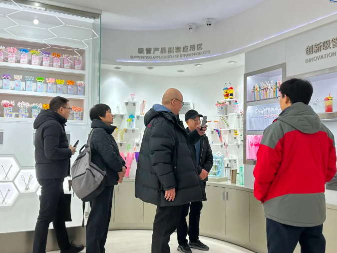 調(diào)研團身后展示的是雙童其他創(chuàng)業(yè)體的非吸管產(chǎn)品!