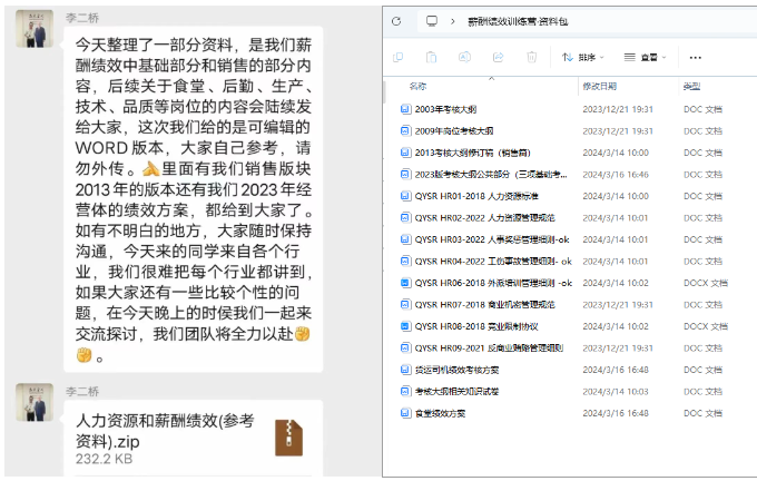 在課程交付完成之后,課研組踐行“掏家底”交付的原則,將“雙童”的薪酬績(jī)效體系和人力資源相關(guān)資料全部打包給到學(xué)員!