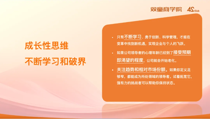 所以,為了帶動企業(yè)成功穿越一個個經(jīng)濟(jì)周期,岳喜偉老師再次向?qū)W員強(qiáng)調(diào)了創(chuàng)業(yè)者要有的成長!
