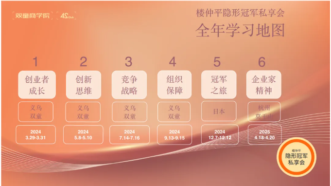 《樓仲平隱形冠軍私享會》在交付過程中,會根據(jù)“開門”、“破圈”、“取舍”、“進(jìn)化”、“出發(fā)”、“開悟”等6個模塊的不同主題,每期邀請一位飛行嘉賓與樓仲平老師一起完成,引導(dǎo)各位同學(xué)不斷打開思維,實(shí)現(xiàn)一次次成長蝶變。