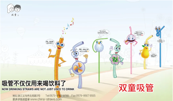 所以早在2004年,創(chuàng)始人樓仲平就帶領(lǐng)“雙童”就打破了“吸管只能用來喝水的”隱含假設(shè),并通過要素拆解和重新組合把吸管從單一的“喝水”功能向情感化、體驗化和娛樂化延伸,實現(xiàn)產(chǎn)品售價和附加值的成倍增長,讓“雙童”持續(xù)20年成為全球吸管行業(yè)的NO.1。在2005年的戶外廣告和會刊封底廣告中