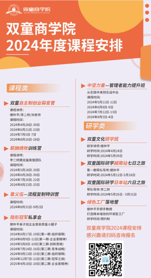 目前,這套機(jī)制已經(jīng)被雙童商學(xué)院打磨成了一套非常成熟的、可復(fù)制、可實踐的課程——《自主制創(chuàng)業(yè)裂變營》。現(xiàn)在該課程已經(jīng)是目前已經(jīng)賦能了1700+家中小企業(yè)成長!