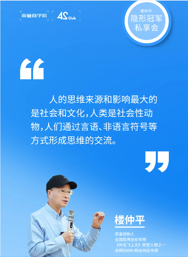 本期,樓仲平老師將攜手薛元昊老師,通過(guò)三天時(shí)間鍛煉私享會(huì)學(xué)員們的創(chuàng)新思維與多元思維,從底層打通商業(yè)認(rèn)知,交付哲科思維和商業(yè)高認(rèn)知!