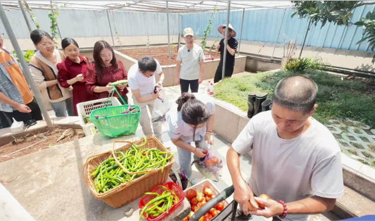 一走進(jìn)菜園,當(dāng)家人樓總就帶著小伙們開(kāi)啟“戰(zhàn)斗”模式,毫不夸張,只一會(huì)兒功夫,黃瓜、番茄被裝滿了一筐又一筐,這種在工廠里也能貼近自然的農(nóng)家生活,真的超幸福!