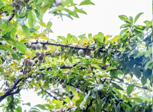 石榴和李子沉甸甸的,壓彎了枝頭