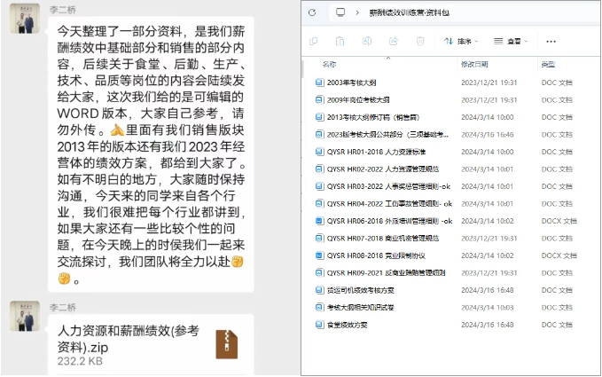 在課程交付完成之后,課研組踐行“掏家底”交付的原則,將“雙童”的薪酬績(jī)效體系和人力資源相關(guān)資料全部打包給到學(xué)員!