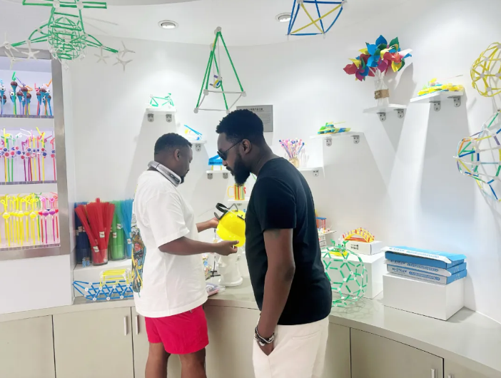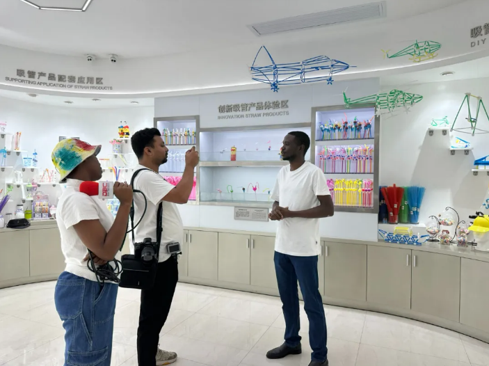 這些琳瑯滿目的吸管和吸管模型,每一款都獨具匠心,形態(tài)萬千,引得中外師生連連驚嘆,贊嘆之聲不絕于耳。若非親眼所見,實難想象一根小小的吸管竟能蘊含如此非凡的創(chuàng)造力與想象力。他們紛紛感慨,“想把吸管賣到中東去”。