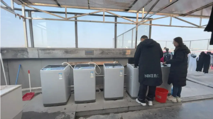 在員工宿舍9樓,“雙童”設有一個露天洗衣房,這個區(qū)域大約有兩三百平方米。為了應對多變的天氣條件,該區(qū)域上方安裝了陽光板。這樣做的原因是為了在晴天時讓陽光充分照射進來,使衣物能夠得到充足的日曬,同時在雨天又能防止衣物被淋濕。