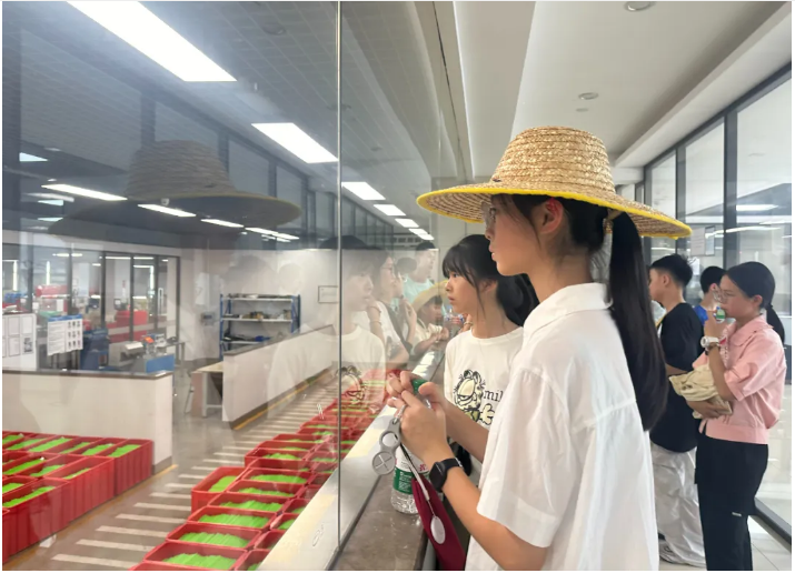 倒數(shù)第三站,同學(xué)們來到了“雙童”生物可降解吸管生產(chǎn)車間的參觀通道,透過這扇特殊的窗口,大家親眼見證了“雙童”可降解吸管從原材料到成品的全套生產(chǎn)工藝流程,每一個(gè)細(xì)節(jié)都顯得那么精密而高效。