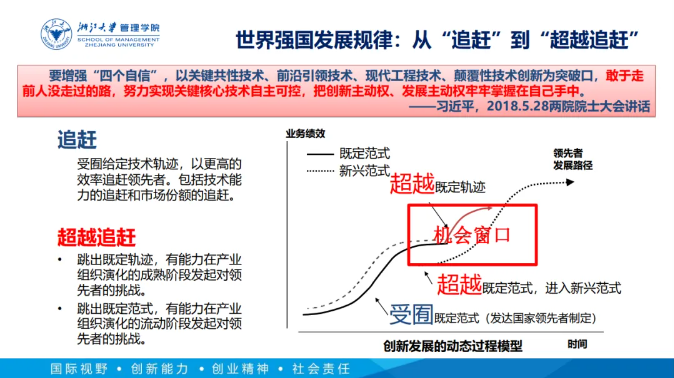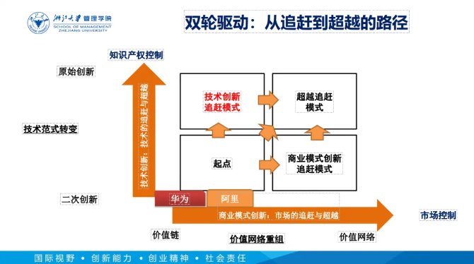 如何通過創(chuàng)新管理實現(xiàn)“追趕超越”?吳曉波老師也給出了實現(xiàn)路徑:技術(shù)創(chuàng)新和商業(yè)模式創(chuàng)新雙輪驅(qū)動。