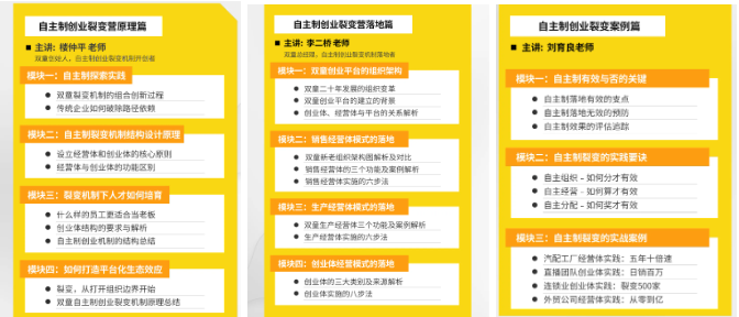 而《自主制創(chuàng)業(yè)裂變營》就是依托該機制,把“雙童”的落地實操方法與成功經驗經驗有機結合,不斷打磨、升級的一套針對中小微企業(yè)的管理課程。
