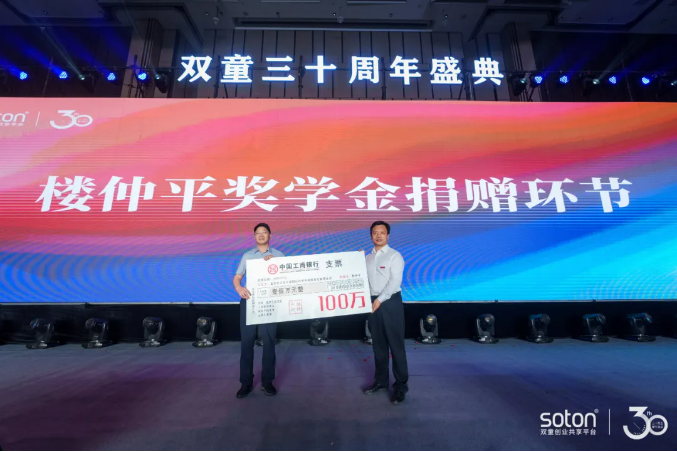 本次慶典活動(dòng)上,雙童樓仲平再次為母校捐贈(zèng)100萬教育基金,以表感激之情。同時(shí),樓仲平也再次向社會(huì)廣大企業(yè)家與創(chuàng)業(yè)者發(fā)出號(hào)召:積極投身教育、投身公益,共同推動(dòng)城市發(fā)展人才建設(shè)!