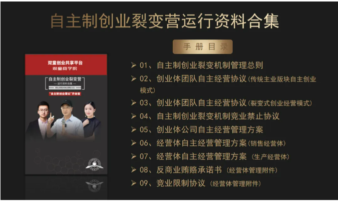 3、交付自主制創(chuàng)業(yè)裂變模式的各項規(guī)則、文本、合同等書面資料