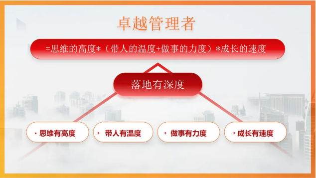 因為企業(yè)的管理者,不僅扮演著連接戰(zhàn)略和執(zhí)行的關(guān)鍵角色,還承擔(dān)著推動企業(yè)持續(xù)成長和創(chuàng)新的重要責(zé)任,所以企業(yè)期望的管理者是一個思維有高度、帶人有溫度、做事有力度、成長有速度的人。