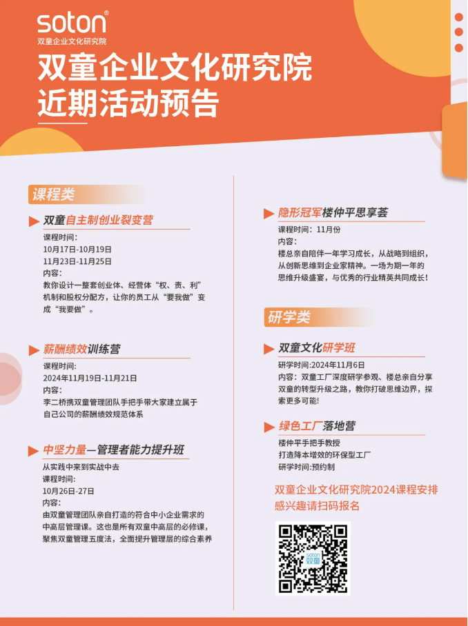 然而,隨著時(shí)代的發(fā)展,雙童也遇到了前所未有的挑戰(zhàn)。2015年,我正式被聘為雙童總經(jīng)理,當(dāng)時(shí)公司面臨著持續(xù)增長受限、成本巨幅提升、產(chǎn)業(yè)政策波動以及優(yōu)秀人才流失等問題。那時(shí)的我深刻意識到,作為管理者,我需要從下往上打,勇于放棄自己所擅長的工作,向經(jīng)營者轉(zhuǎn)變。