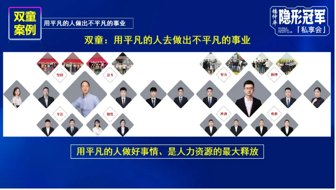 樓仲平老師在課上多次告訴大家:用平凡的人做好事情,是人力資源的最大釋放。但具體如何做,才能夠撬動人性、激發(fā)活力呢?“雙童”這30年來,是如何搭建完善的組織體系,確保“用平凡人做好事情”的?