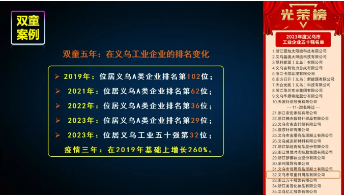 通過(guò)該機(jī)制,雙童已經(jīng)形成了以吸管制造業(yè)為基礎(chǔ),以國(guó)際貿(mào)易和創(chuàng)業(yè)教育兩大板塊為融合的新的產(chǎn)業(yè)模式,做到了輕重結(jié)合、虛擬結(jié)合,不僅讓雙童業(yè)績(jī)實(shí)現(xiàn)連年攀升,增強(qiáng)了企業(yè)的活力和反脆弱性,同時(shí)實(shí)現(xiàn)了企業(yè)和員工的共同富裕!