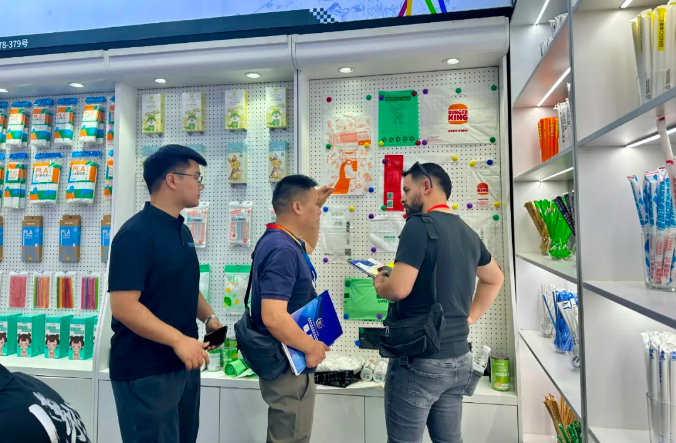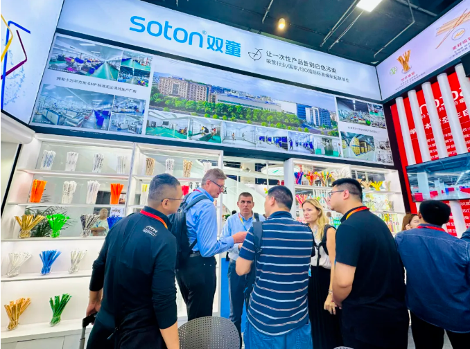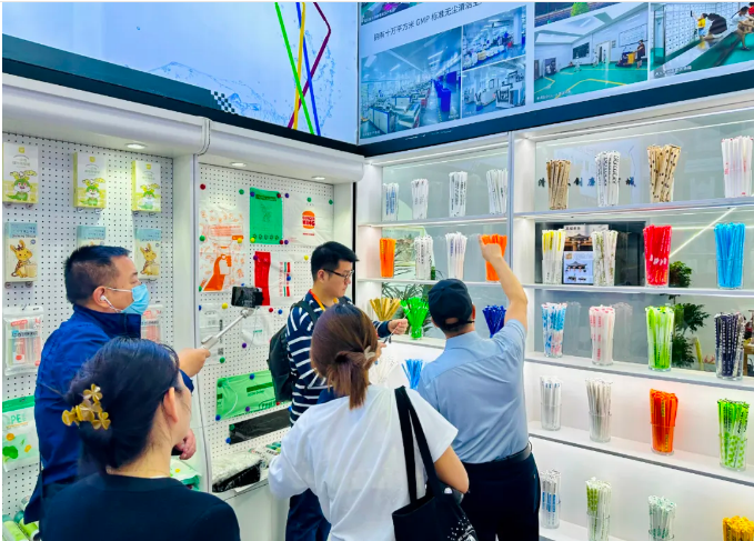 走過繁忙和充滿活力的雙童展位現(xiàn)場,展位內(nèi)柜前豐富多彩的吸管映入眼簾,稱此展位為“迷你吸管博物館”亦恰如其分。而在眾多展品中,“雙童”在此次義博會上推出的可降解吸管系列尤為亮眼,備受中外客戶的青睞與好評!