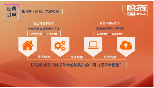 但是經(jīng)驗是對過往的總結歸納,范式轉換(時代轉變)下社會環(huán)境發(fā)生巨大非連續(xù)性變化時,經(jīng)驗就很難建立持續(xù)的有效認識。所以農(nóng)耕文明的知識體系無法解決工業(yè)時代的全新問題,工業(yè)時代的知識無法解決數(shù)字時代的全新問題,更不能解決人工智能時代所面對的各種問題。
