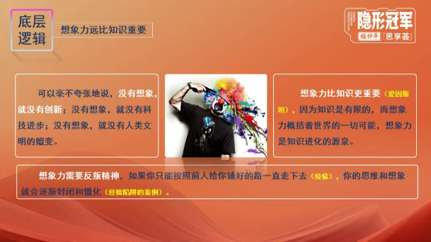 為了提高同學們對想象力的重視,該章節(jié)一開始,樓老師就借用視頻“愛因斯坦的忠告”讓大家明白:想象力比知識更重要,因為知識是有限的,而想象力則包圍著整個世界。