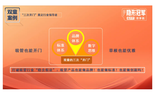 “雙童”初創(chuàng)的前十年,在同行都在依賴 “一米攤板”找客戶的時候,他將眼光放長遠,打造品牌體系、數(shù)字化升級和標準化建設(shè),不斷帶領(lǐng)“雙童”走在“求變”的路上。