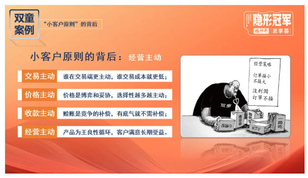 企業(yè)最終的目的不僅是活著,而是有品質(zhì)、有尊嚴、有存在感的活著。因此,樓仲平展開了新一輪的“變革”。推行“小客戶原則”,主動跳出價格內(nèi)卷,果斷放棄無利潤的大客戶,轉(zhuǎn)戰(zhàn)高質(zhì)量的中小客戶,重新掌握話語權(quán)。
