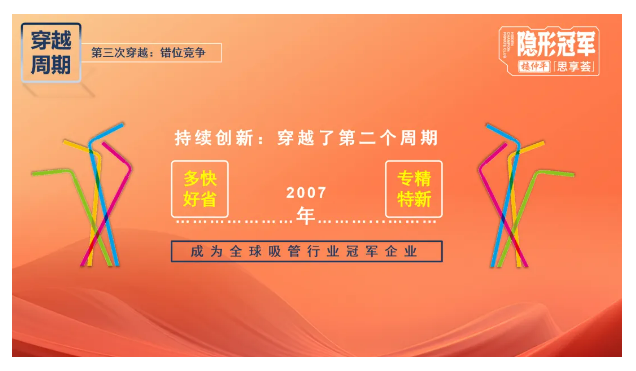 正是這樣持續(xù)的創(chuàng)新,讓“雙童”又穿越了一個周期,完成了從“多快好省”到“專精特新”的轉(zhuǎn)變,成為吸管行業(yè)當之無愧的“隱形冠軍”!