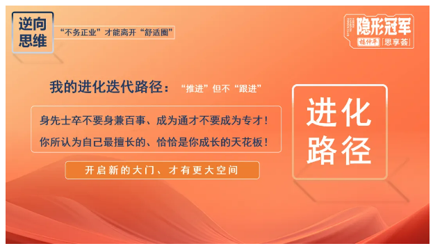 而這樣的“不務(wù)正業(yè)”讓他能夠有更大空間,思考新的企業(yè)成長路徑,推動企業(yè)脫離“舒適圈”,讓下屬有更多的發(fā)展空間,并在一次次的挑戰(zhàn)中獲得新的突破和增長。