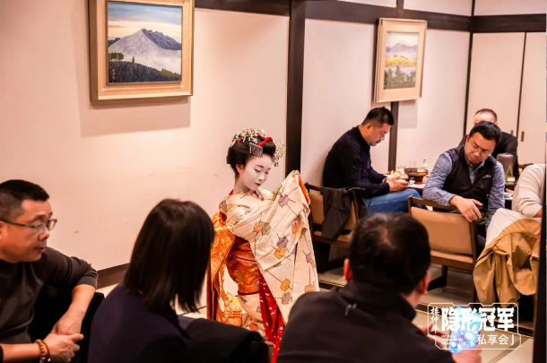 在享用美食的過程中,同學們還體驗了最傳統(tǒng)與最古老日本的藝伎文化。沉浸在日本古老文化的氛圍之中,感受藝伎的優(yōu)雅與神秘。通過一段藝伎的表演,仿佛被引領著跨越時空的界限,回到那個充滿詩意與儀式感的時代。