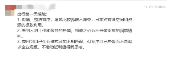 在第二期“弟子班”第一模塊《開啟創(chuàng)業(yè)者成長之門》中,樓老師曾反復影響同學們:拿著舊地圖找不到新大陸,這個世界并非經(jīng)驗積累的產物,而是通過“顛覆性破壞”創(chuàng)造的全新世界。所以,創(chuàng)業(yè)者思維“開門”至關重要,思維方式指導著創(chuàng)業(yè)者的行為!而本次日本冠軍之旅游學,正是開啟新視野、實現(xiàn)思維“破局”的有效途徑之一。