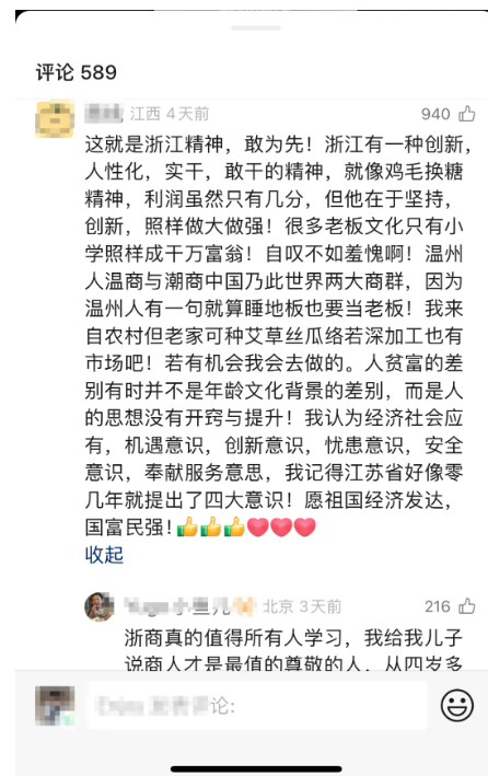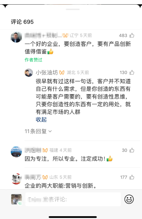 實際上,這條爆款視頻只是出自《雙童文化研學(xué)班》中一個簡短的學(xué)員游學(xué)片段。在這一分鐘的視頻中,樓總金句頻出,“理解創(chuàng)新的本質(zhì),做價值而非卷價格”“一家好的企業(yè)應(yīng)該能創(chuàng)造顧客”等觀點,收獲了眾多網(wǎng)友的認(rèn)可!